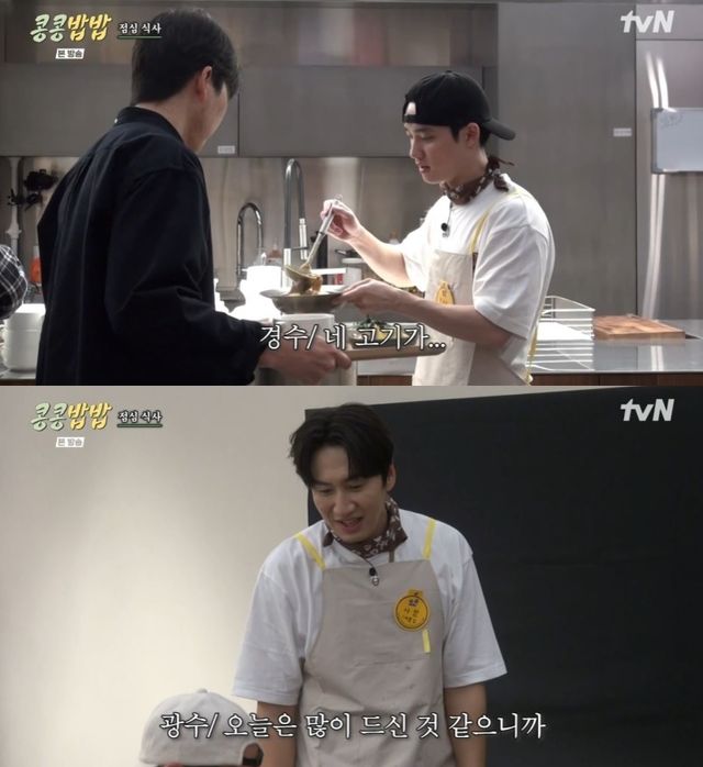 지난 9일 tvN ‘콩 심은 데 콩 나고 밥 먹으면 밥심 난다(콩콩밥밥)’ 1회에서는 이광수와 도경수가 처음으로 구내식당 운영에 도전해 유쾌한 케미스트리와 먹음직스러운 요리를 선보여 시청자들의 주목을 받았다.