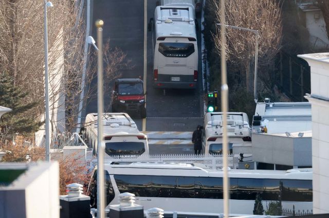 고위공직자범죄수사처와 경찰의 윤석열 대통령 2차 체포영장 집행 시도가 임박한 가운데 10일 오전 서울 용산구 한남동 대통령 관저 정문이 대형버스로 가로막혀 있다. 2025.1.10/뉴스1 / 뉴스1