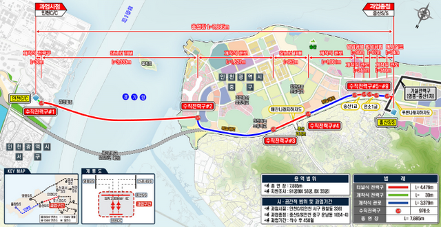 이번 인천지역 전력구공사(인천CC-중산)는 인천광역시 서구 원창동에서 중구 운남동까지 총 공사 길이 7.9km의 전력구를 설치하는 사업이다. 해저터널 3.3km와 수직구 9개소가 포함된다.