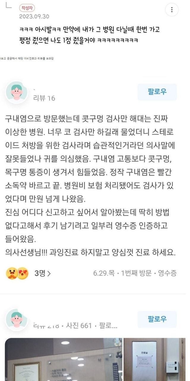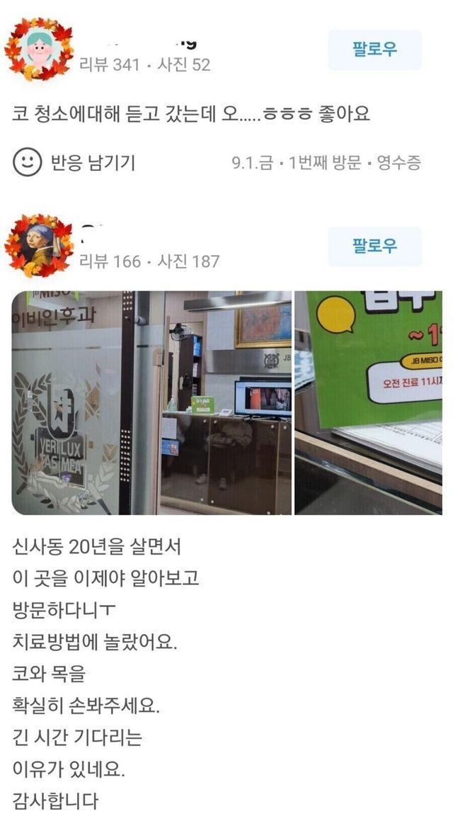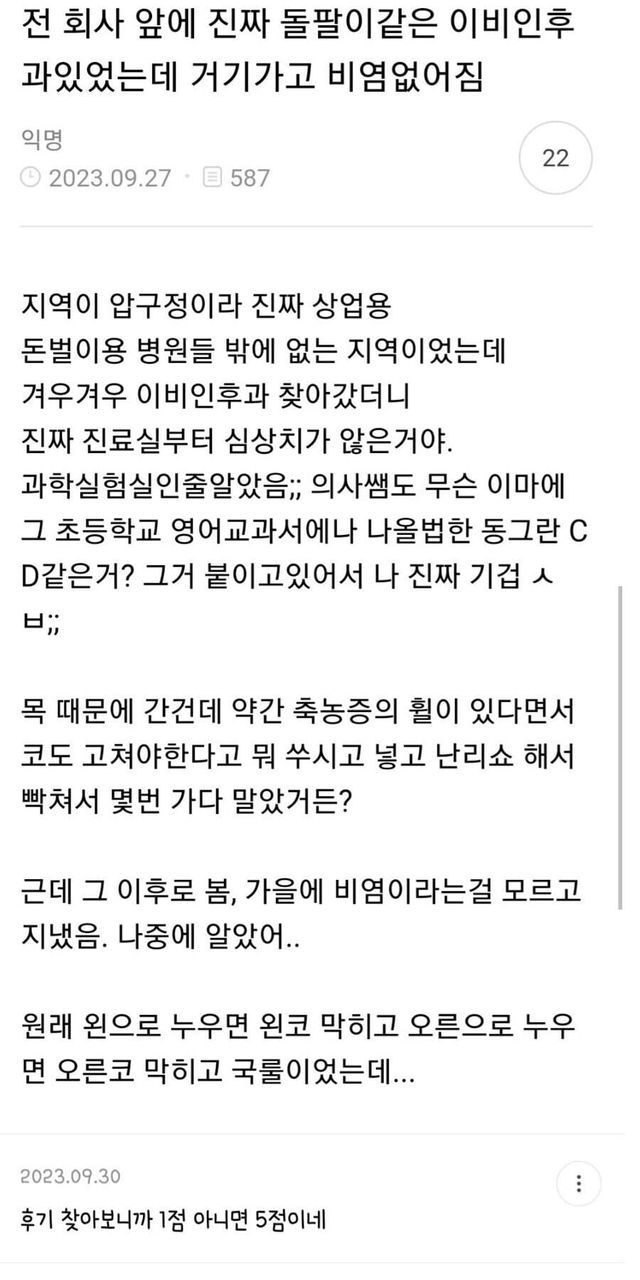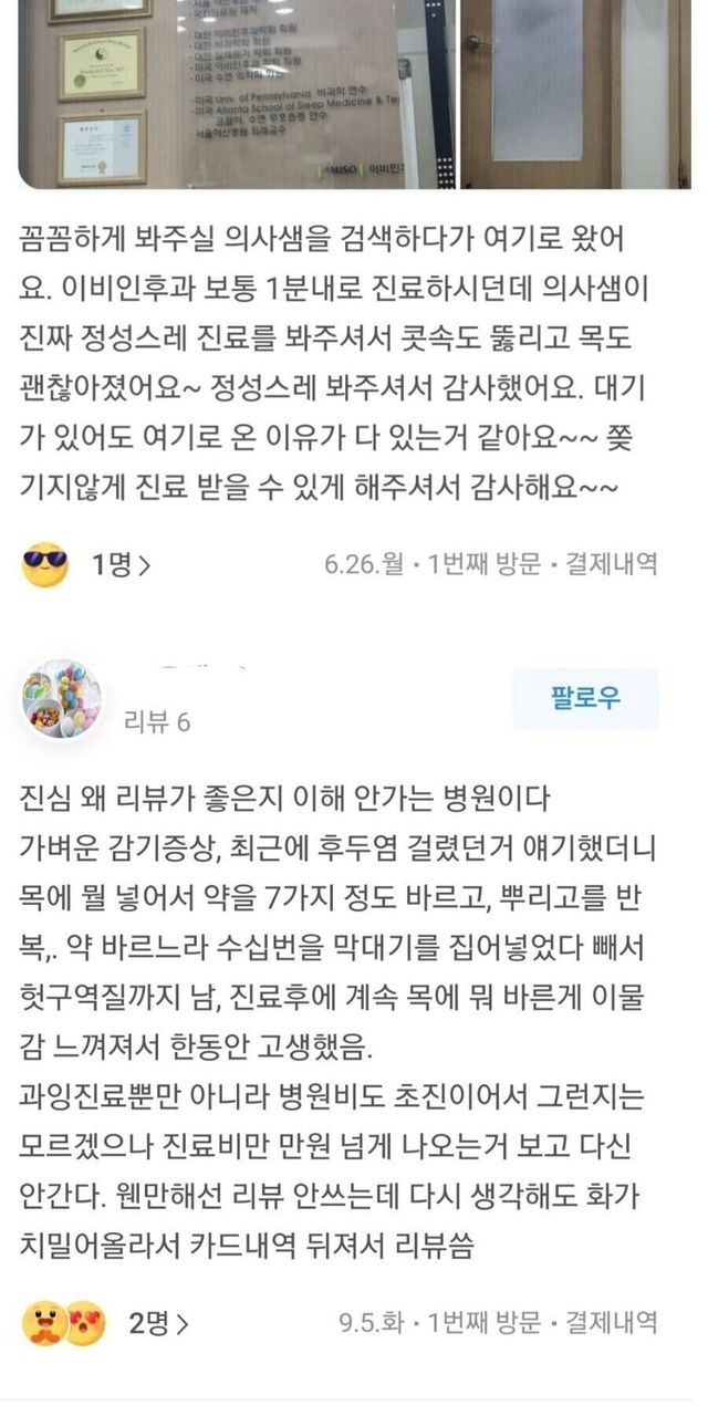 평가가 1점 아니면 5점인 이비인후과