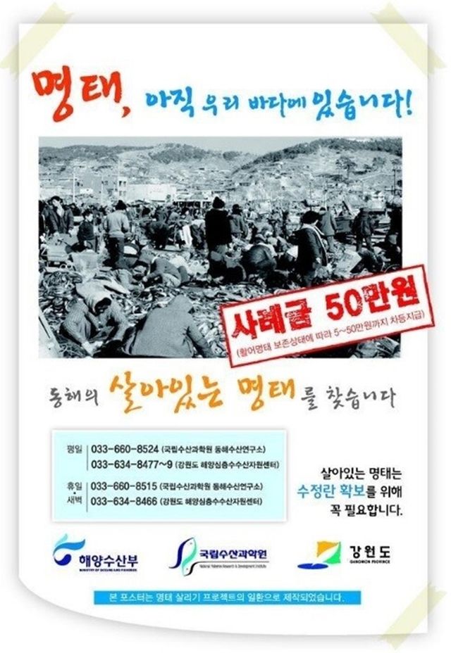마리당 50만 원의 사례금을 내건 활어 명태 현상금 포스터 / 해양수산부