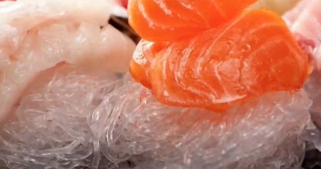 천사채 위에 놓인 연어회. / '감성이슈' 유튜브 영상 캡처