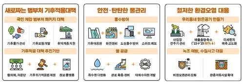 특히 국민 안전과 기후물가 대응 등 기후적응을 위한 범부처 민생 패키지 대책을 마련하고, 극한 홍수에 대비해 취약한 하천을 신속 정비하며 지역공감대 기반의 기후대응댐을 추진한다.