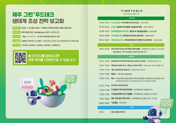 제주도는 10일 15시 제주썬호텔에서 사전포럼을 시작으로 ‘제주 그린+푸드테크 생태계 조성 전략’을 발표하고, 2035년까지의 종합발전계획을 제시한다.