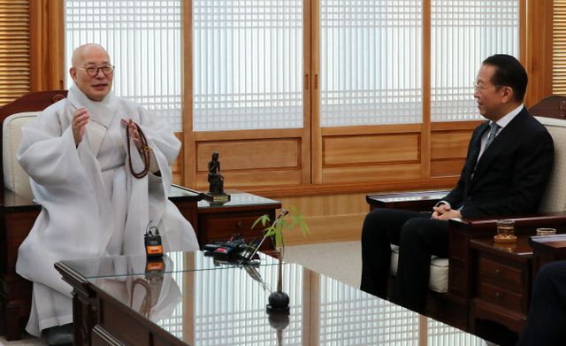 권 위원장은 10일 서울 종로구 조계사에서 조계종 총무원장 진우스님을 예방했다.
