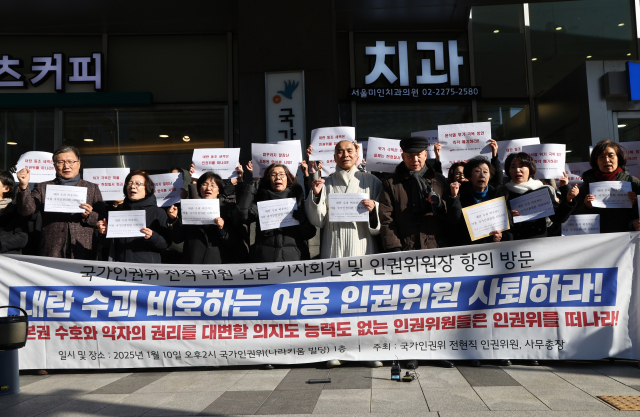 이들을 포함한 전직 인권위원 29명은 이날 인권위 앞에서 기자회견을 열고 "인권위원으로서 자격은 물론이거니와 민주시민으로서의 자격조차 갖추지 못한 인권위원들의 퇴장을 명령한다"며 "인권위의 이름을 동원해 내란범을 비호하는 행위를 멈추라"고 했다.