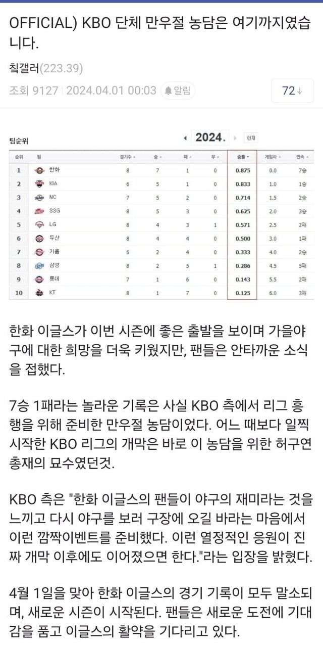KBO : 야구팬 여러분 고생많으셨습니다