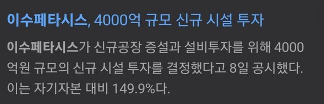놀랍게도 국장밸류업리스트에 들어가있는 이수페타시스의 이야기다