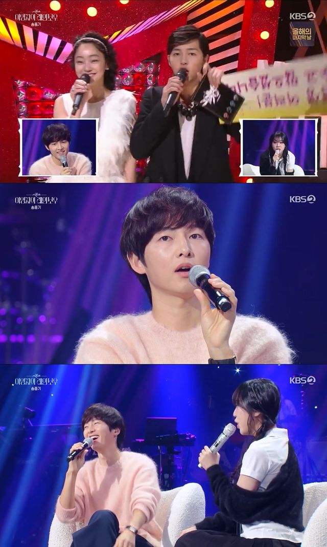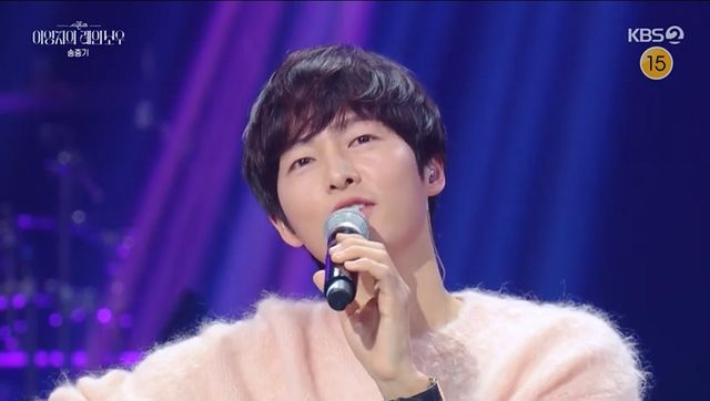 이날 송중기는 "노래하는 프로그램이라 긴장된다"며 10년 전 '뮤직뱅크' MC를 했던 과거를 털어놨다.