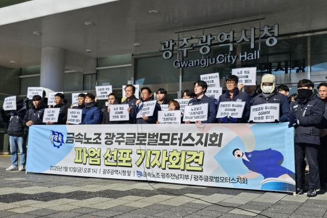 금속노조 광주글로벌모터스지회(지회)는 10일 광주광역시청 앞에서 기자회견을 열고 "오늘 확대간부 4시간 파업을 시작으로 다음 주부터 조합원 순환 파업에 돌입한다"며 "조합원 순환 파업 세부 일정은 쟁의대책위원회에서 결정할 것"이라고 밝혔다.