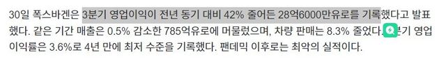 영업이익률도 급격히 악화되서 BMW, 폭스바겐은 2-3% 수준으로 추락..