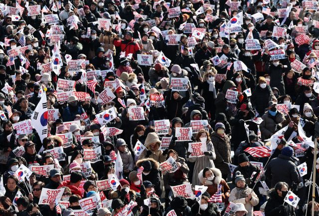 11일 오후 서울 용산구 한남동 대통령 관저 앞은 영하 기온에도 오전부터 윤 대통령 체포·탄핵을 반대하는 집회 참가자들로 가득했다. 참가자들은 추위 속에도 두툼한 외투와 모자, 장갑 등을 두르고 집회에 참여했다. 낮이 되면서 기온이 풀리자 집회를 찾는 이들이 늘어 관저 인근 3개 차로 200미터(m)가량이 집회 참가자들로 가득 찼다.
