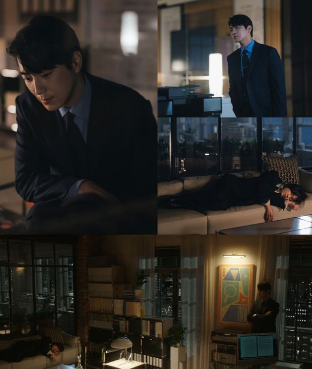 11일 지윤과 은호 사이의 로맨스 기류는 더욱 짙어진다. 공개된 스틸컷에는 늦은 밤, ‘피플즈’에 혼자 남은 지윤을 찾은 은호의 모습이 포착됐다. 술에 취한 듯 대표실 소파에 잠들어 있는 지윤을 바라보는 은호의 눈빛은 한껏 날 서 있던 첫 만남과는 완전히 달라져 있어 이목을 사로잡는다. 본격 로맨스 눈빛을 장착한 그는 그저 바라보고 있는 것만으로도 보는 이들을 완벽하게 설레게 만든다.