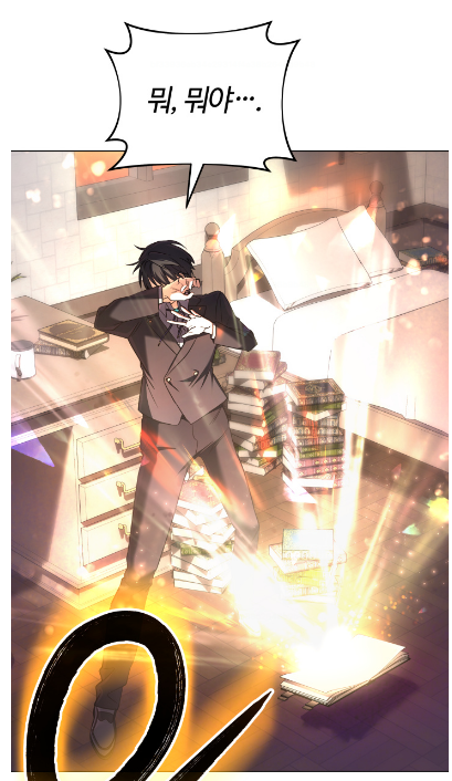책을 펼쳐 보던 중 책에서 갑자기 빛이 뿜어 나옵니다.