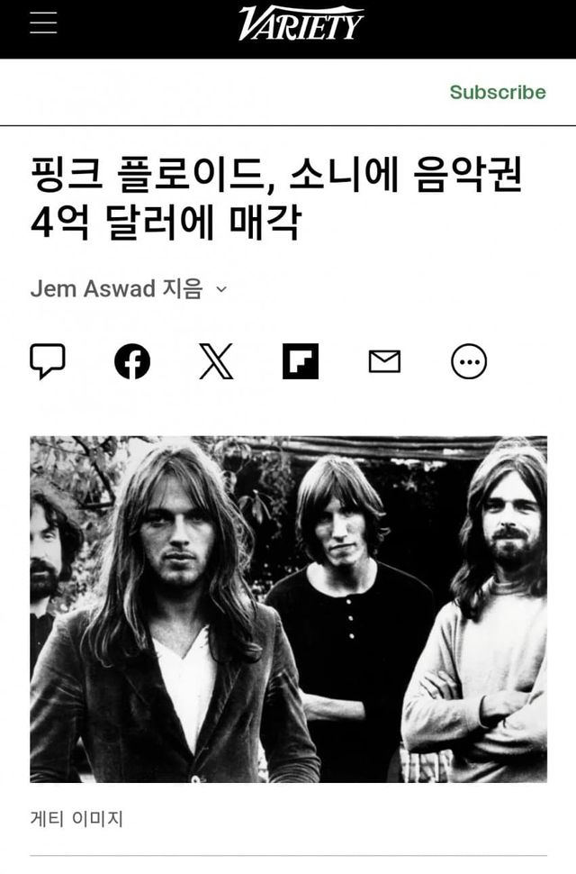 핑크 플로이드가 음악판권을 4억 달러(한화 5500억원)에 소니뮤직에 매각하였습니다