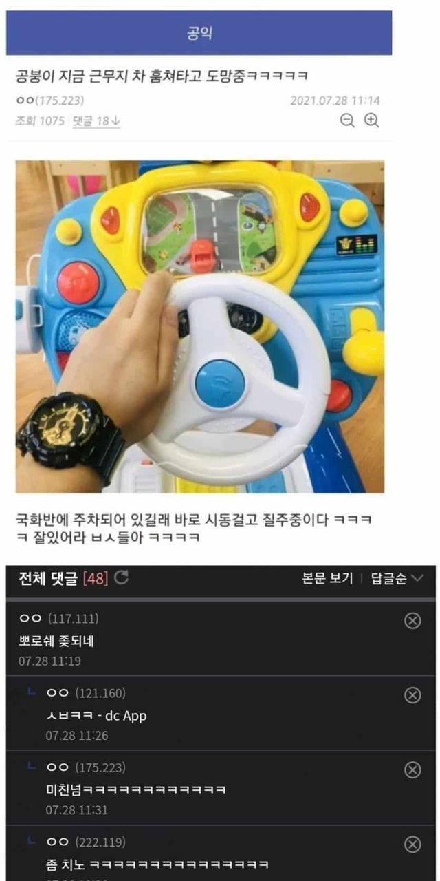근무지 차 훔쳐타고 도망중인 공익