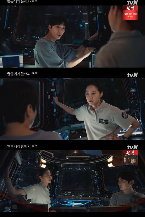 11일 방송된 tvN 새 토일드라마 '별들에게 물어봐' 3회에서는 공룡(이민호 분)이 우주 유영을 앞둔 이브 킴(공효진)을 걱정하는 모습이 그려졌다.