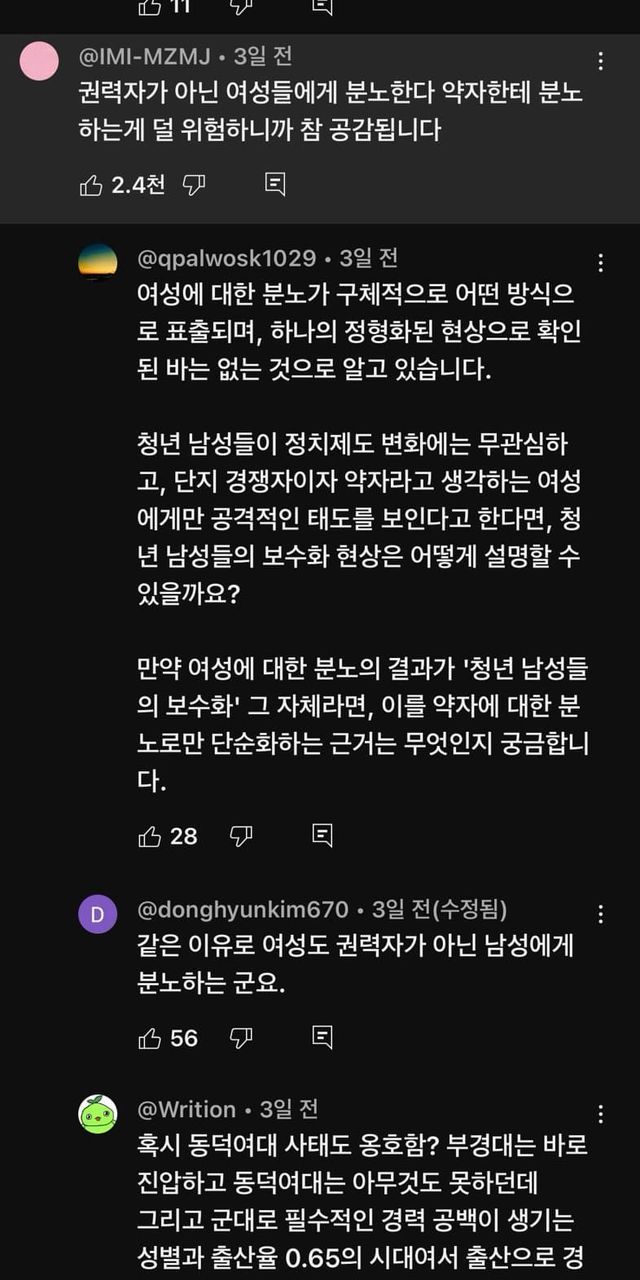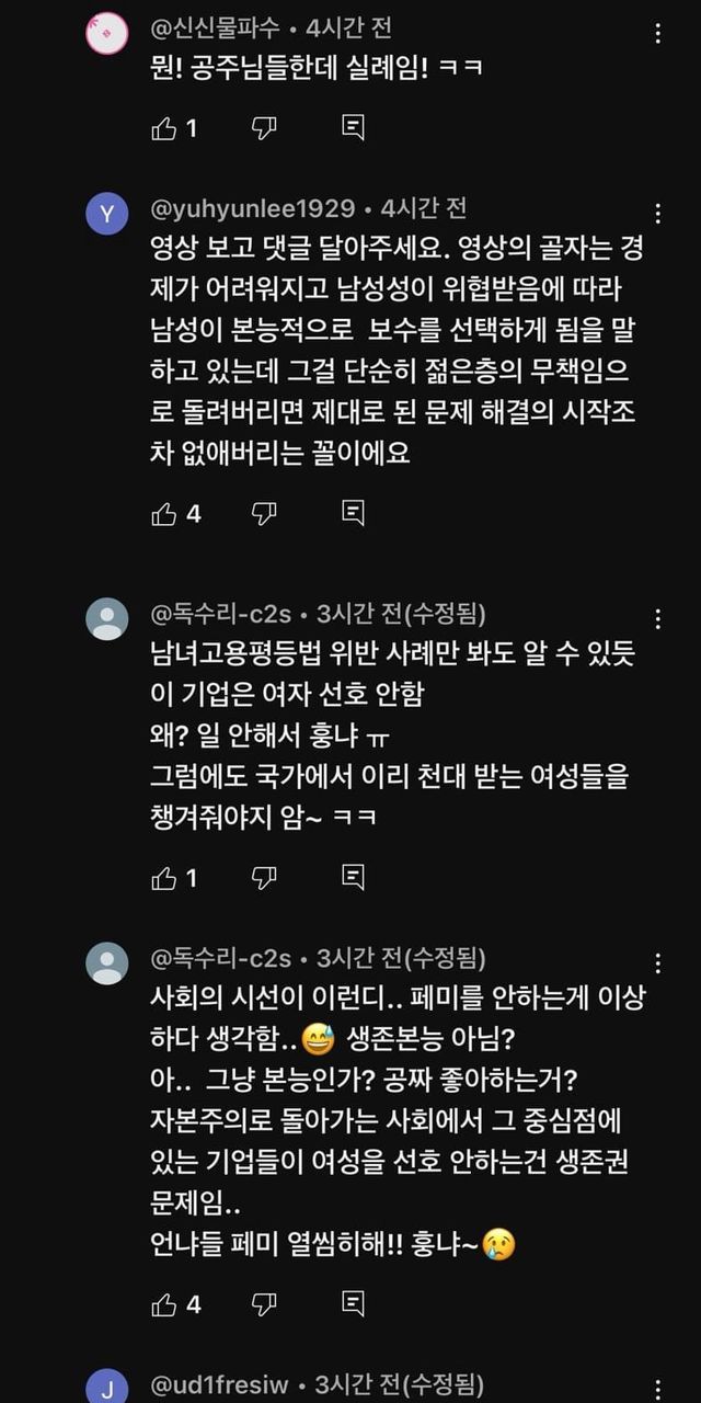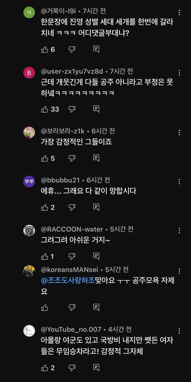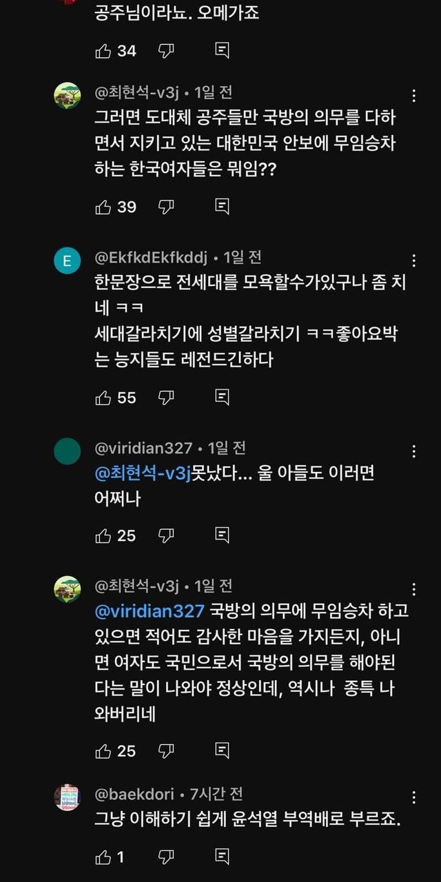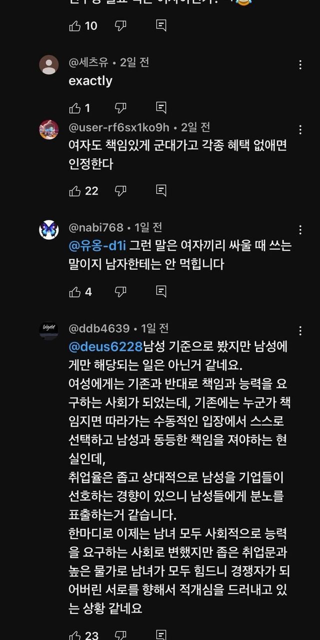 한줄요약: 남녀평등 하고 싶으면 여성징병부터 하자구요잇