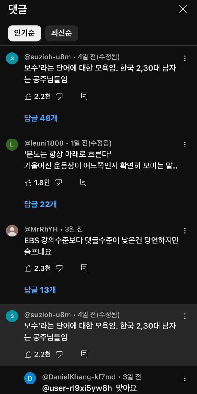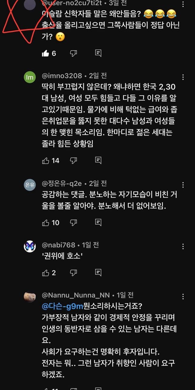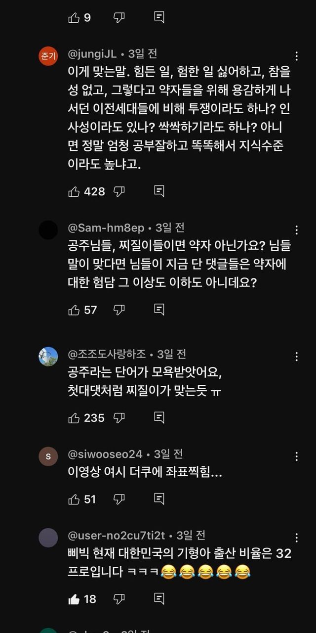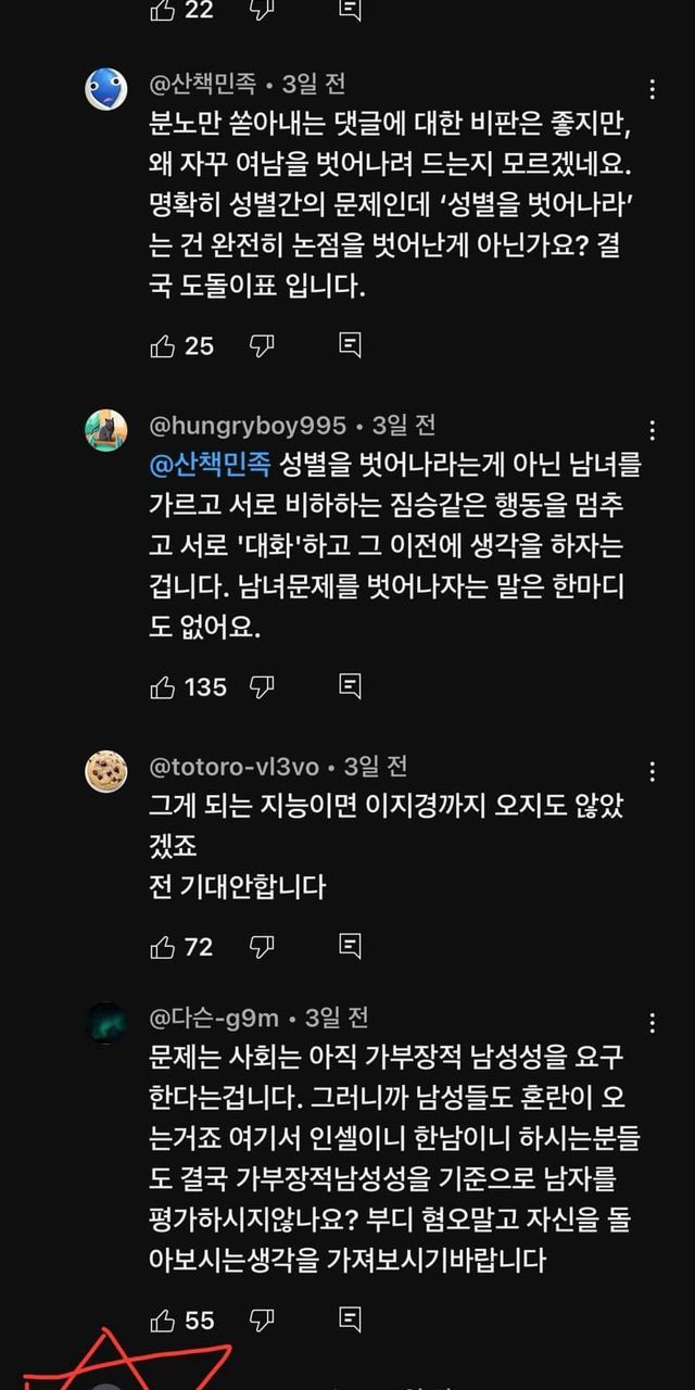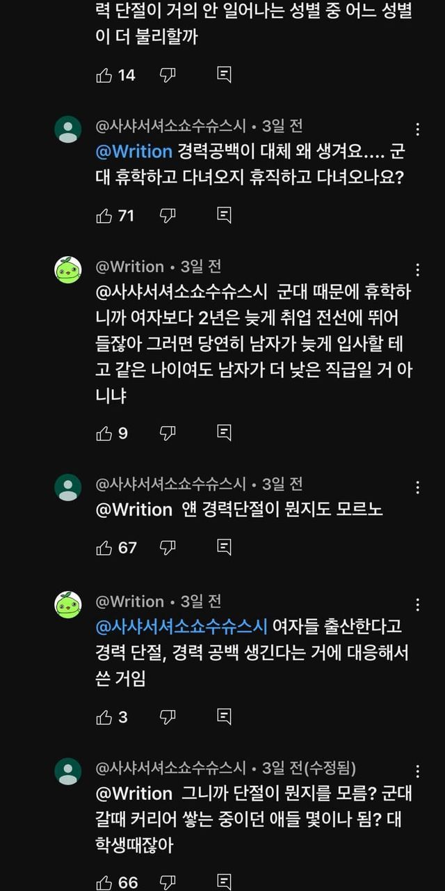 한줄요약: 남녀평등 하고 싶으면 여성징병부터 하자구요잇