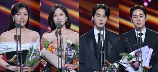 일일드라마 부문 우수상 역시 공동 수상이었다. '수지 맞은 우리' 함은정과 백성현, '결혼하자 맹꽁아!' 박하나, '피도 눈물도 없이' 오창석이 수상했다. 특히 지난해 11월 모친상을 당한 함은정은 "한달 전쯤에 어머니가 갑자기 별세하셨다"며 "너무 즐겁게 시청하던 작품이었다. 저한테는 이 드라마가 의미 있고 이 상이 뜻깊은 것 같다"고 말해 뭉클함을 안겼다.
