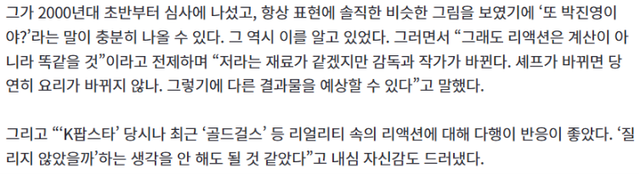최근 제발회에서 매번 심사평이 똑같다고 지적 아닌 지적을 받았는지