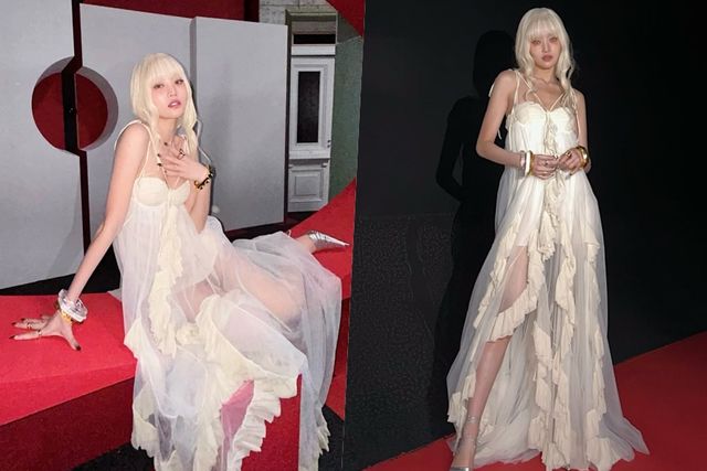 (여자)아이들 민니가 시스루 슬립 원피스를 소화했다.