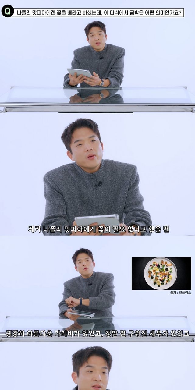 나폴리 맛피아에겐 꽃을 빼라고 해놓고 자기 두부요리에는 금박을 올려서 뭐라하는 반응이 있었는데
