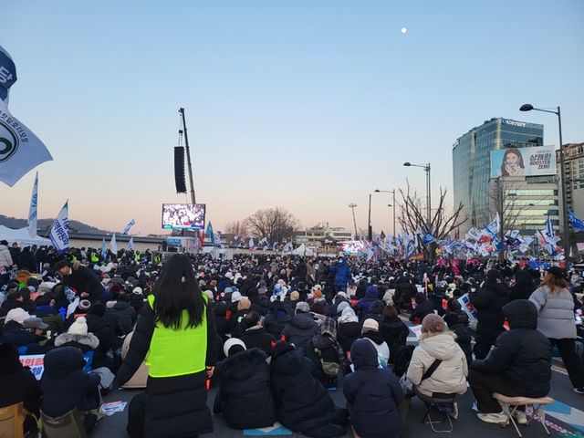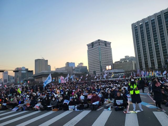 비상행동 집회 주변에는 언몸을 녹일수 있도록 마련된 어묵탕,감자튀김,소떡소떡, 풀빵까지 다양한 음식들이 참가들에게 제공되었다