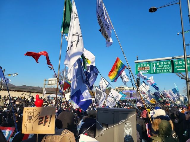 윤석열 대통령에 대한 체포영장 재발부 이후 첫 주말인 11일 서울 광화문 일대와 한남동에선 탄핵 찬반 단체들의 대규모 집회가 강추위속에서 열렸다.