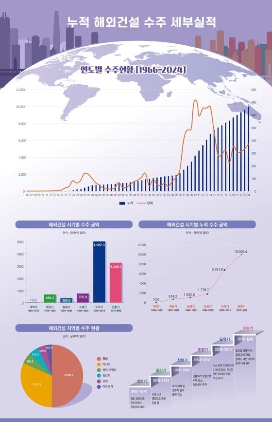 해외건설이 누적 1조 달러를 수주하기까지 양적·질적으로 다양한 변화와 성장을 겪어왔다.