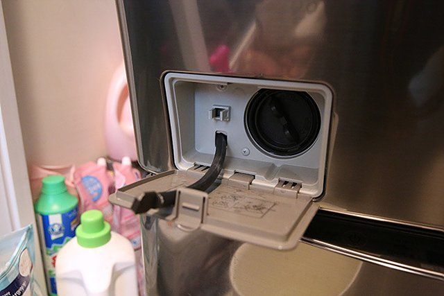 그리고 세탁기 하부에는 잔수 제거 호스가 있어요