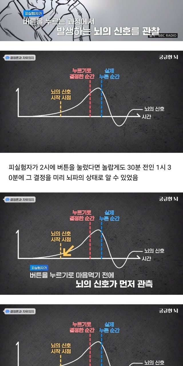 이미 결정이 되어있다는 이상한 괴리감을 설명하는거