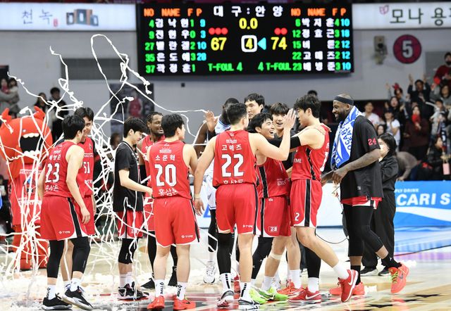 정관장은 12일 안양 정관장 아레나에서 열린 2024~25 KCC 프로농구 정규리그 홈 경기에서 대구 한국가스공사를 74-67로 이겼다. 10연패를 끊어낸 승리였다.