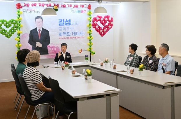 | ▲ 지난 해 화목한 데이트를 통해 주민과 소통하는 김길성 구청장 |