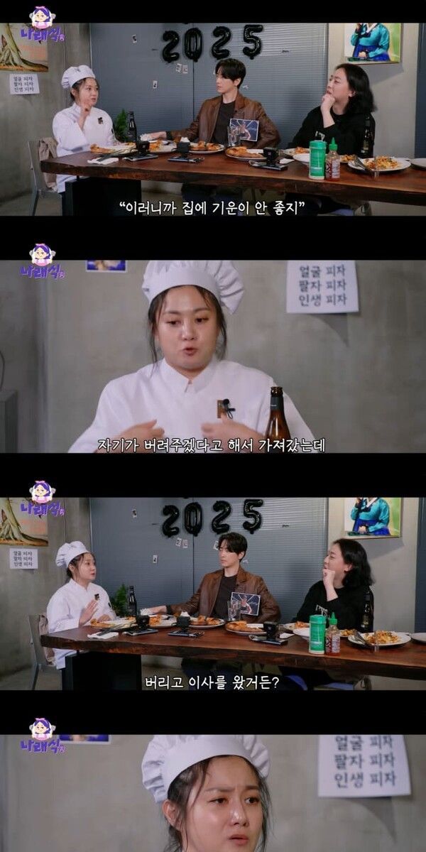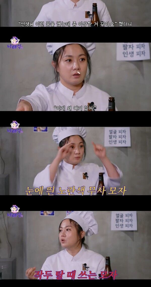박나래는 이후 자신이 알고 있는 보살에게 찾아가 꿈을 설명했더니 "보살 선생님이 집을 오겠다고 하셔서 밤에 오셨다. 오시더니 '여기 너무 안좋다', '기분이 너무 안 좋아 . 나 토할 것 같아'라고 하더라. 그러더니 '이게 왜 여기 있어', '이걸 왜 여기다 뒀어'하더라. 그래서 뭔가 봤더니, 그때 내가 '신박한 정리'라고 연예인들 집 정리해주는 프로그램을 했었다. 노란색 무사 모자가 너무 예뻐서 '버릴 거야?'하고 너무 예뻐서 가져왔는데, 알고 봤는데 그게 무사 모자가 아니고 무속인들이 작두 탈 때 쓰는 모자"라고 설명했다.