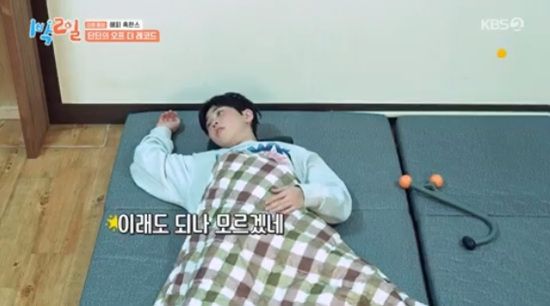 12일 방송된 KBS 2TV '1박 2일 시즌4'에서는 딘딘이 혹한기 캠프에 혼자 실내취침을 하는 모습이 전파를 탔다.