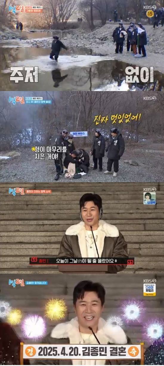 김종민은 "중대발표가 있다. 저 김종민 장가갑니다. 오늘 정확하게 밝힌다. 날짜는 4월 20일이다"라고 결혼식 날짜를 최초 공개했다.