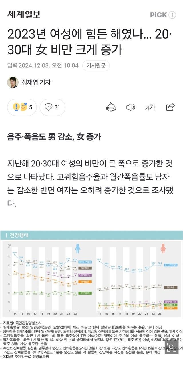 담배 음주도 늘어나는 추세고 점점 아재화되는듯