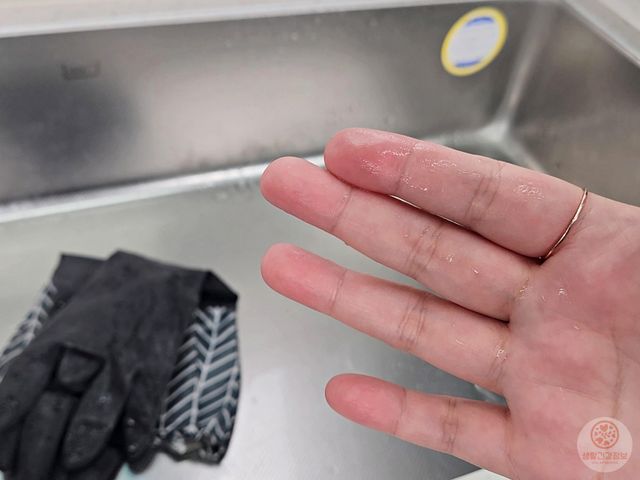 끈질긴 니트릴 고무장갑 한번 써보세요.