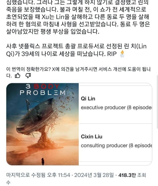 넷플 드라마 삼체 제작 뒷이야기