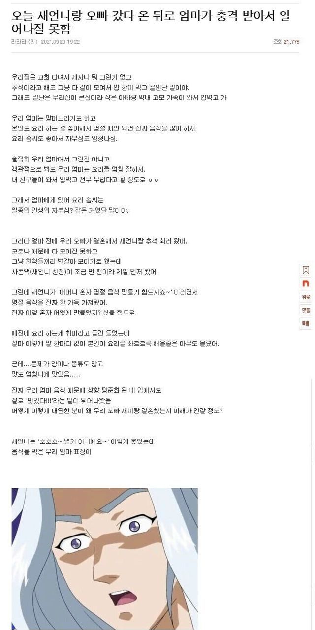 새언니 요리 실력에 크나큰 충격을 받은 엄마