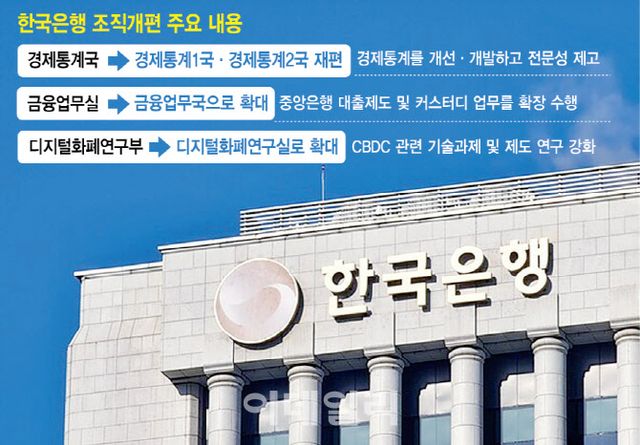 경제통계국의 현 인력은 140여명으로 본부 부서에서 가장 큰 규모다. 한은 관계자는 “경제통계국이 업무 특성상 다른 국에 비해 인력이 많은 편”이라며 “중앙은행의 조사·통계 기능의 중요성을 고려한 결정으로, 기능을 더 강화하겠다는 의지도 반영했다”고 말했다.
