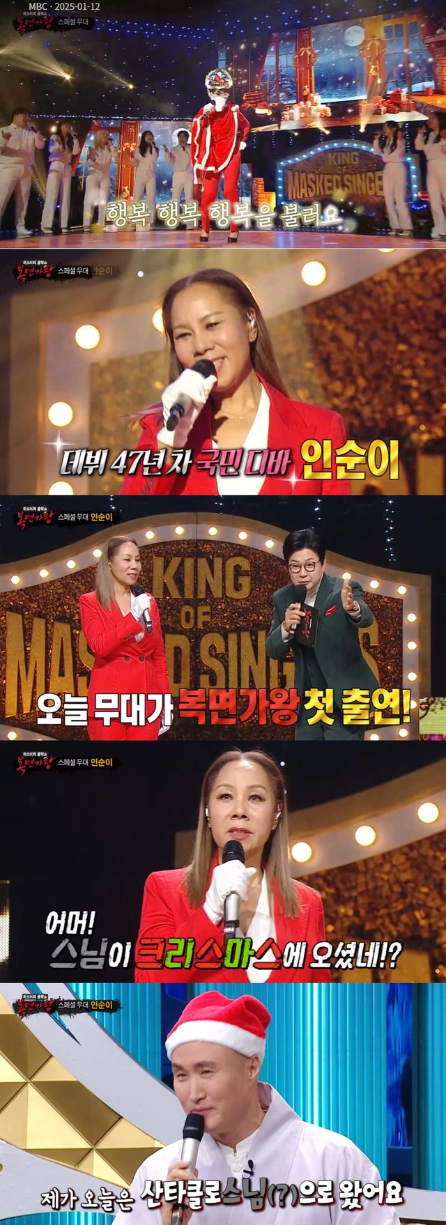 정체는 바로 가수 인순이. 그는 "올 한해도 잘 보내셨죠. 수고 많으셨다. 새해 복 많이 받으셔라"라며 인사했다.