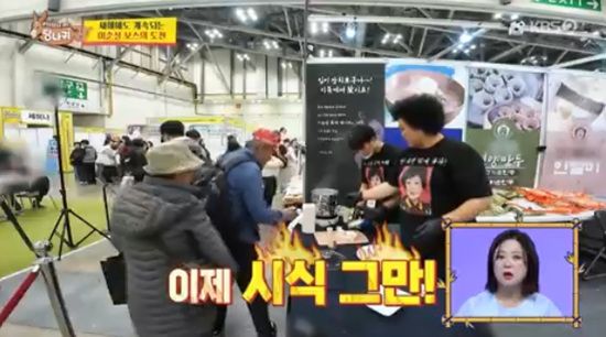 이순실은 "맛보고 그냥 가지 말고 사가셔라"라고 외쳤지만 손님들은 맛만 보고 다른 부스로 이동했다.