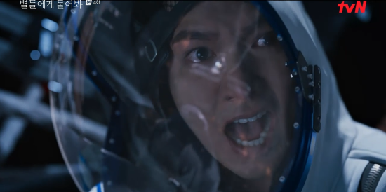 12일 tvN ‘별들에게 물어봐’ 4회에서는 커맨더 이브 킴(공효진 분)의 우주 고립으로 인해 우주정거장에 비상경보가 울리는 가운데 동료를 구하기 위해 공룡(이민호)과 우주인들이 노력하는 모습을 보여줬다.