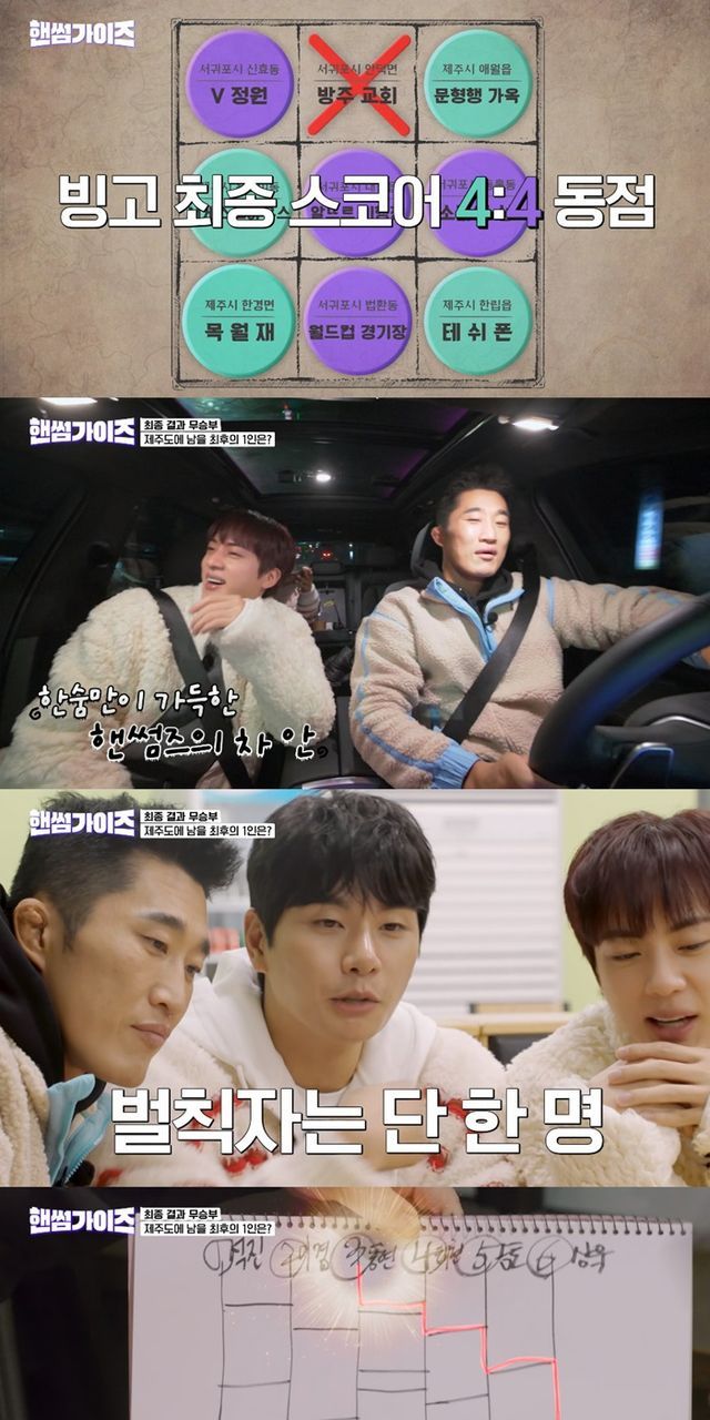 이날 두 팀은 막상막하 대결을 펼쳤지만 핸썸즈 팀이 앞서갔다. 하지만 종료전, 가이즈 팀이 빙고를 완성, 4대 4 동점이 됐다.