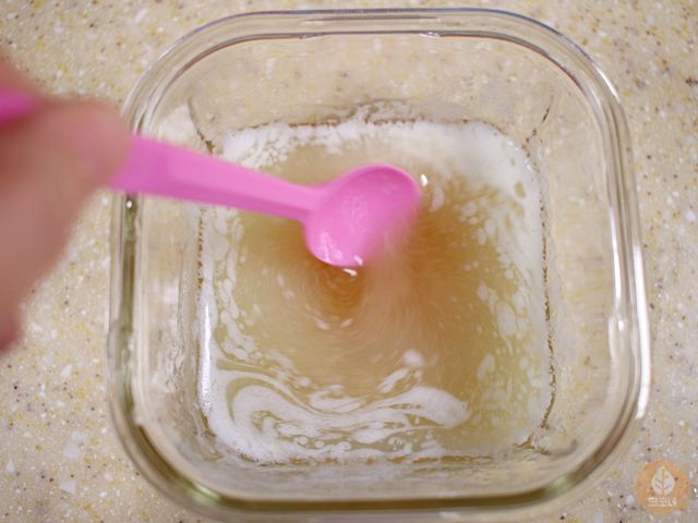 꿀2숟가락을 섞어서 허니버터소스를 만들어요.