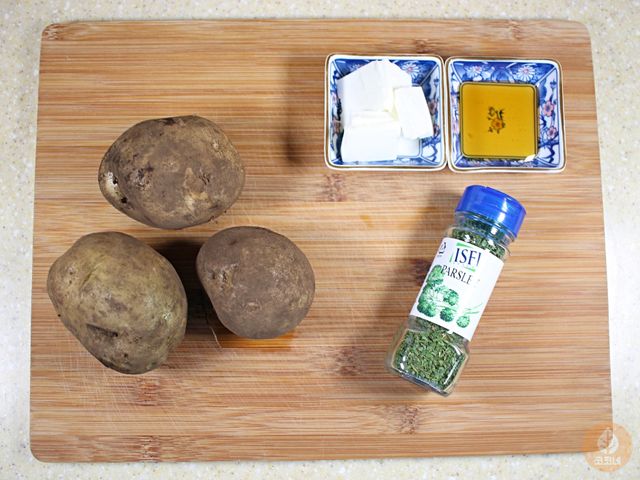 재료는 감자, 버터, 꿀, 파슬리가루 준비했어요.
