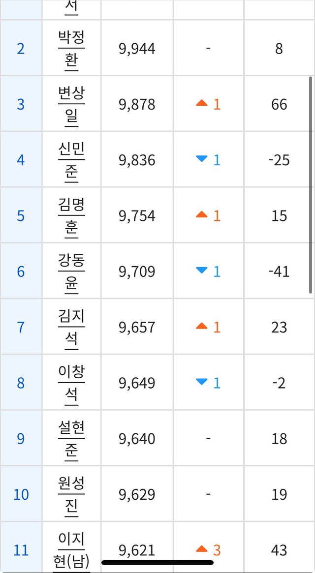 1-4위가 압도적이고, 나머지선수들은 중국에 밀려서 큰 활약 못하고있던 상황이었음