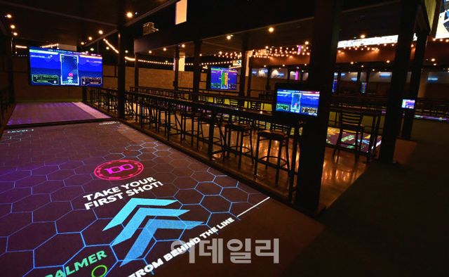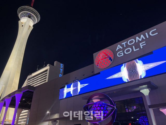이데일리가 지난 9일(현지시간) 방문한 이곳은 미국 라스베이거스에 최근 오픈한 아토믹 골프다. 흡사 스포츠 라운지 바 같은 아토믹 골프는 실외 골프연습장에 스포츠 바, 펍, VIP 라운지 등이 결합된 ‘스포테인먼트(스포츠와 엔터테인먼트의 합성어)’ 시설이다. 볼링과 음악을 즐기는 국내 볼링 펍과 비슷하다. 아토믹 골프는 지상 4층 규모로 실외 골프연습장의 면적만 축구장 4개 크기인 약 2만8000㎡에 달한다.